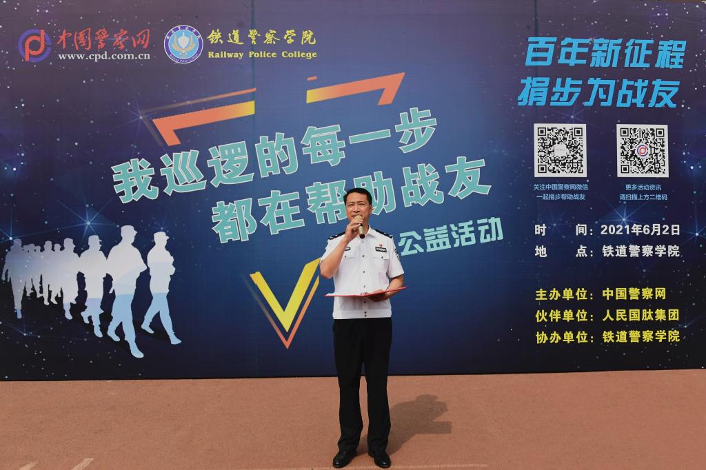 他表示 ,在铁道警察学院举办“百年新征程,捐步为战友”迎接建党100周年主题跑步活动,帮扶救助困难战友,既是全体师生的荣幸,更是义不容辞的责任。铁道警察学院作为公安部直属院校,从这里走出去的共和国卫士遍布大江南北。每一个走上公安一线的铁警毕业生都会面临流血、伤病、甚至牺牲的考验;每一个铁警的在校生,都在思考着“为何从警、如何做警”的重大人生课题。他希望同学们牢记习近平总书记“对党忠诚、服务人民、执法公正、纪律严明”的总要求,牢记自己的从警初心和入学誓言,努力成为一名德智体美全面发展的公安事业优秀建设者和可靠接班人。