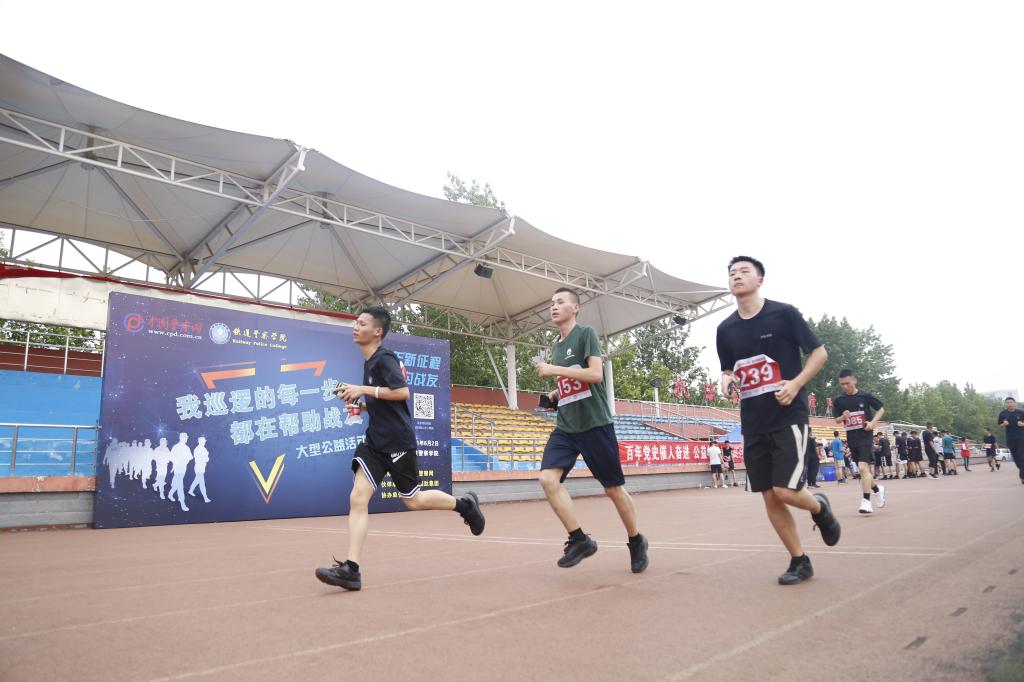 6月2日下午,“百年新征程,捐步为战友” 迎接建党100周年主题跑步活动在铁道警察学院拉开帷幕。本次活动由我院与中国警察网联合举办,学院400名师生参与其中,以1公里(约1圈)健步走、7.1公里(约6圈)慢步跑的形式展开,将自己的步数捐出,携手为困难民(辅)警家庭奉献爱心。