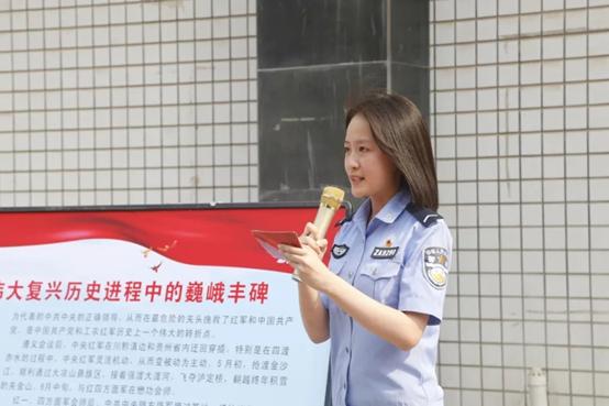 下午3:30,王荣胜副院长带领下,由100名师生组成的方阵开始1公里健步走。行进途中合唱歌曲《没有共产党就没有新中国》《团结就是力量》《歌唱祖国》,金盾之声讲解员分别在行进途中的5个党史教育点,现场讲解百年党史中的5次重大事件。