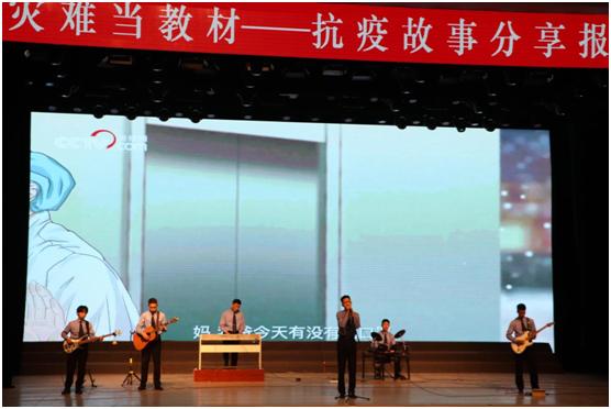 故事分享结束后,我院“流水的冰”学生乐队为大家带来了歌曲《你的答案》,他们坚定有力的歌声,深深感染了在场的每一位听众,赢得了大家的阵阵掌声。