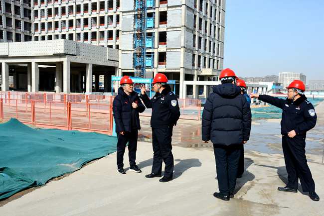 2021年1月29日上午,河南省高等教育基本建设学会理事长、河南省财经政法大学副校长李观虎一行5人在春节前夕专程前往我院龙湖校区,现场调研项目进展情况并看望慰问校区建设管理人员。