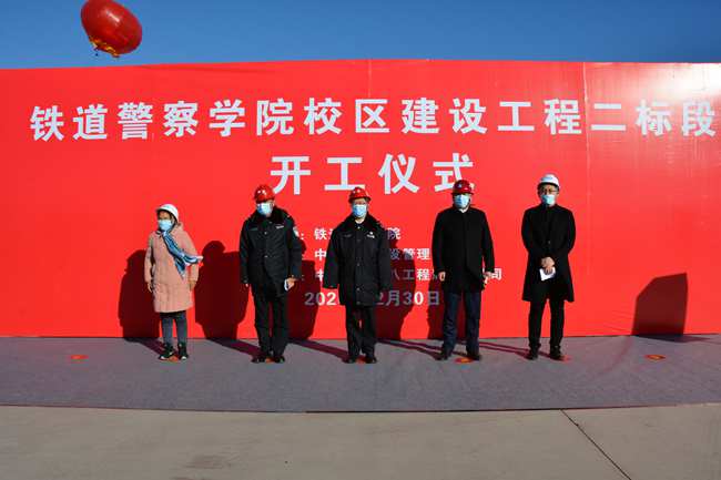 2020年12月30日上午十时,铁道警察学院校区建设项目工程二标段正式开工!院长管曙光、副院长李冠一,中建卓越建设管理有限公司项目常务副总经理路政杰、总监理工程师徐书敏,中国建筑第八工程局有限公司助理总经理、驻豫办事处主任杨爱来共同出席了开工仪式,龙湖校区建设指挥部、监审部、施工单位、监理单位全体同志参加了本次活动。
