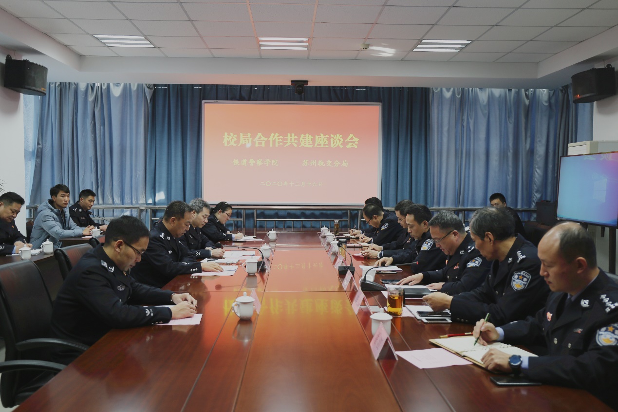 12月16日,学院与苏州市公安局签订校局合作协议。学院党委赵炳军书记、薛怀祖副院长,苏州市副市长、公安局局长江海、谢罡副局长、江苏省公安厅内保总队王中琪副总队长、苏州市公安局城市轨道交通治安分局冯炯局长出席签约仪式。学院教务处、轨道系负责同志和苏州市局有关领导及业务骨干参加活动。