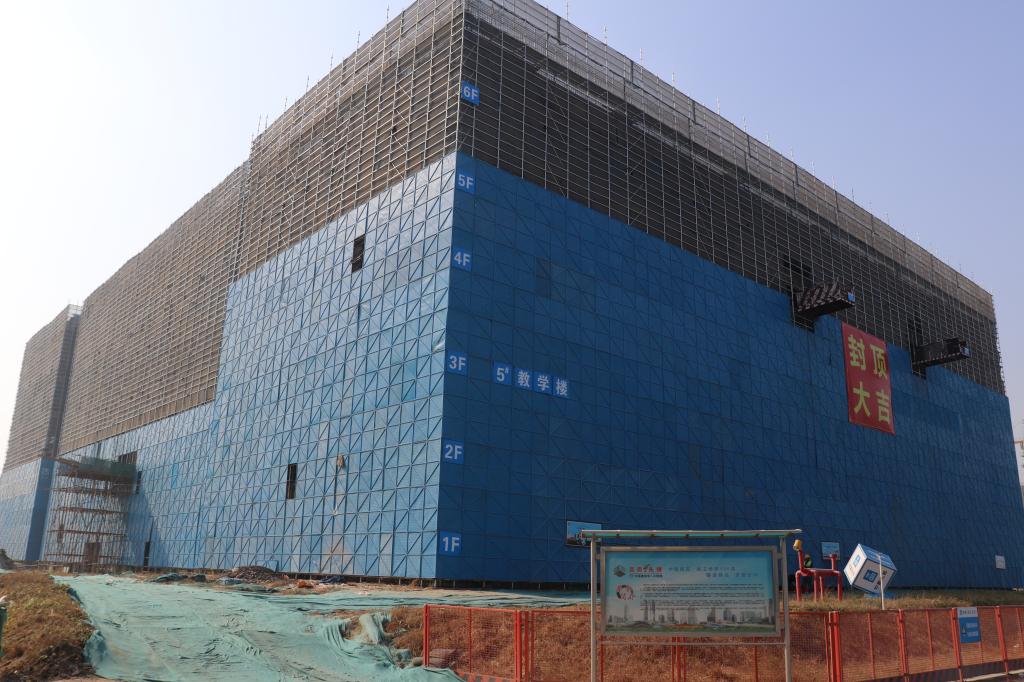 龙湖校区建设工程一标段建设项目占地面积约为150亩建筑总面积为8.7万平方米,包括行政楼、教学楼、图书馆、后勤服务楼及会堂五栋单体建筑。据悉一标段主体结构封顶后,施工将进入二次结构砌筑及安装阶段,计划于2021年9月全部竣工。