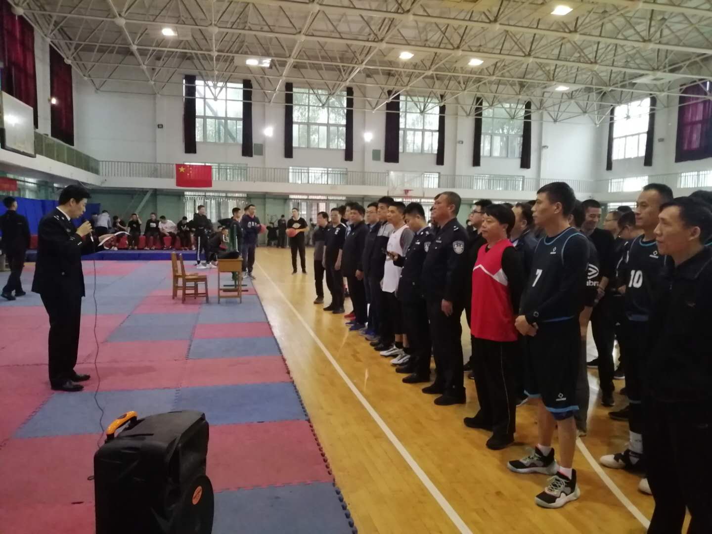 为了丰富教职工的文体生活,提高教职工的身体素质,10月14日下午16:30分,我院教职工三人制篮球赛在警体馆拉开了帷幕。王哲院长助理参加了开幕式。