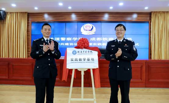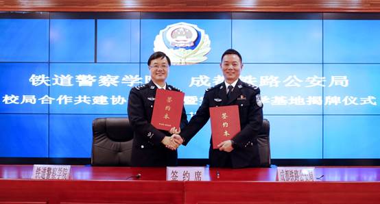 管曙光院长和熊树华局长签署了《铁道警察学院和成都铁路公安局校局合作共建协议书》并为铁道警察学院教学实践基地揭牌。以此次协议签署为标志,铁道警察学院与成都铁路公安局长效合作的新篇章正式开启,双方将拓展合作领域,进一步推动校局共建和资源共享,实现双方相互促进、共同提高。
