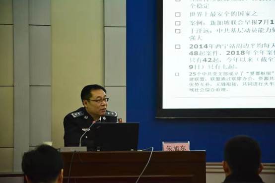 为更好地学习、贯彻全国公安工作会议精神,提高我院师生对新时代公安工作的认识水平,2019年12月4日下午,公安管理学系邀请中国人民公安大学公安政治工作与管理学院院长、博士生导师朱旭东教授来校讲学,做《坚持以习近平新时代中国特色社会主义思想引领公安工作——公安工作会议精神解读》专题讲座。