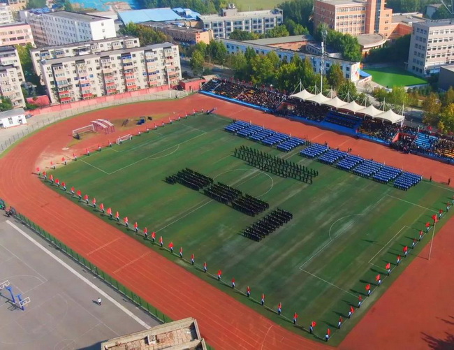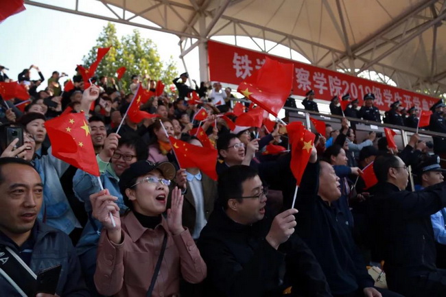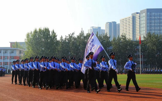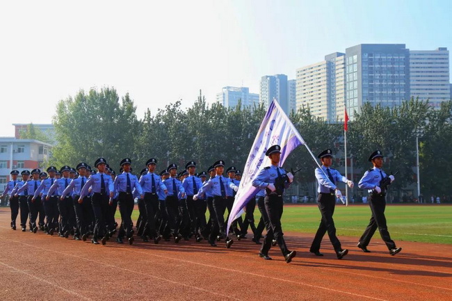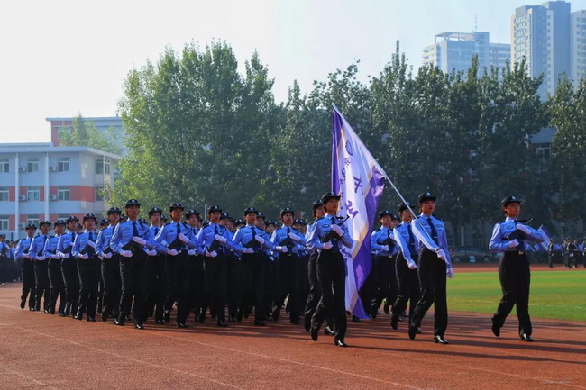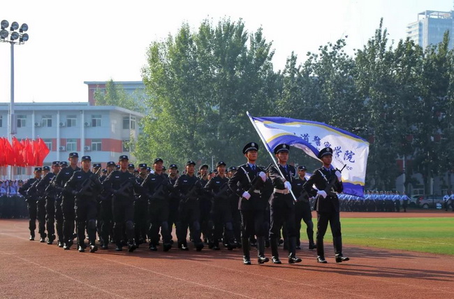 最后,全体参加典礼人员起立,奏唱中国人民警察警歌,管曙光院长宣布2019级新生开学典礼暨军训汇报表演圆满结束。