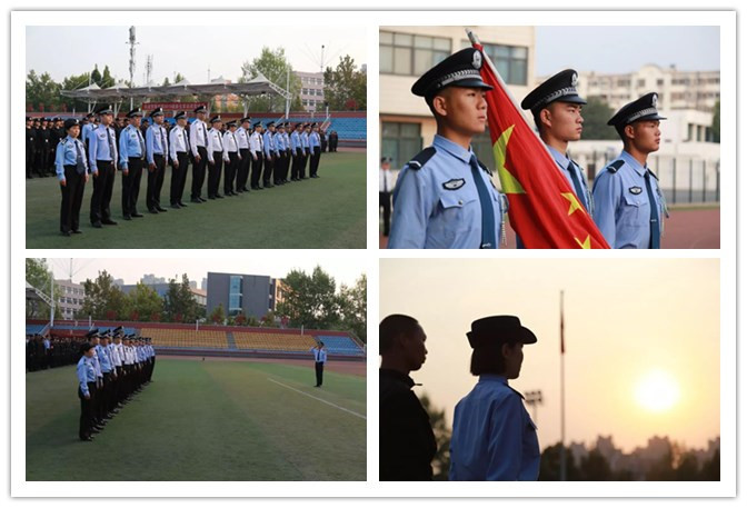 上午7时,精神抖擞的仪仗队学员迈着正步,护卫着五星红旗来到旗杆下,铿锵有力的步伐和雄浑壮阔的口号体现了铁警学子良好的精神风貌。