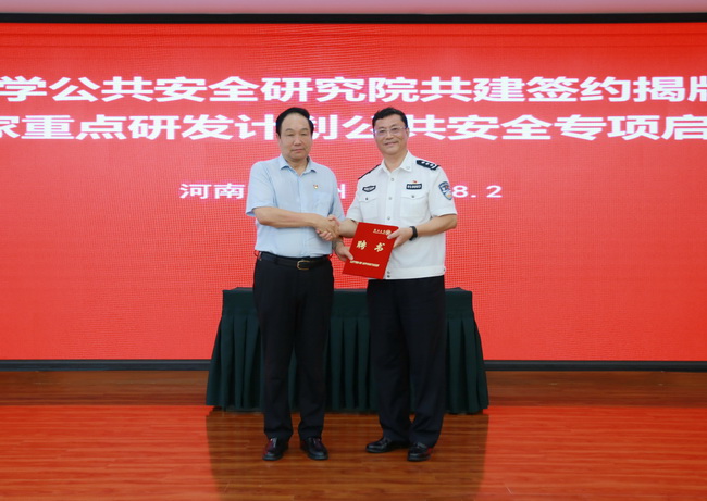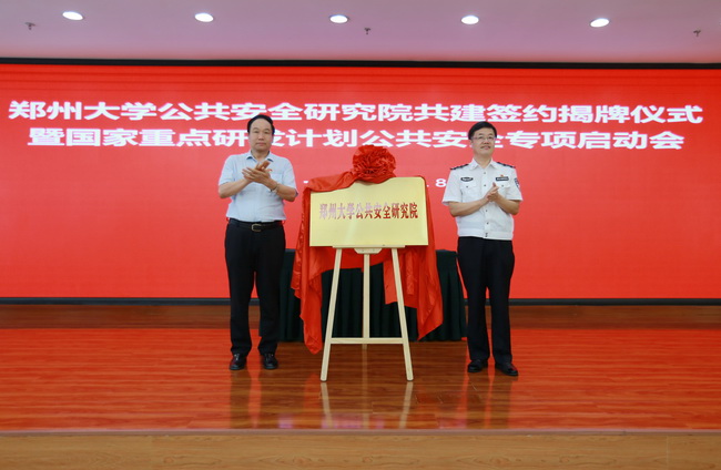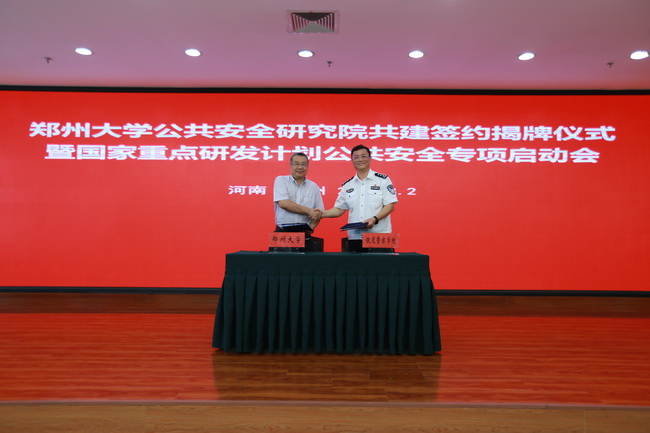8月2日,铁道警察学院与郑州大学共建郑州大学公共安全研究院签约暨揭牌仪式在郑州大学举行。我院党委副书记、院长管曙光和副院长胡传平,郑州大学党委书记牛书成和副校长屈凌波出席仪式。胡传平研究员被聘为郑州大学公共安全研究院院长。郑州大学党委常委、副校长韩国河主持仪式。