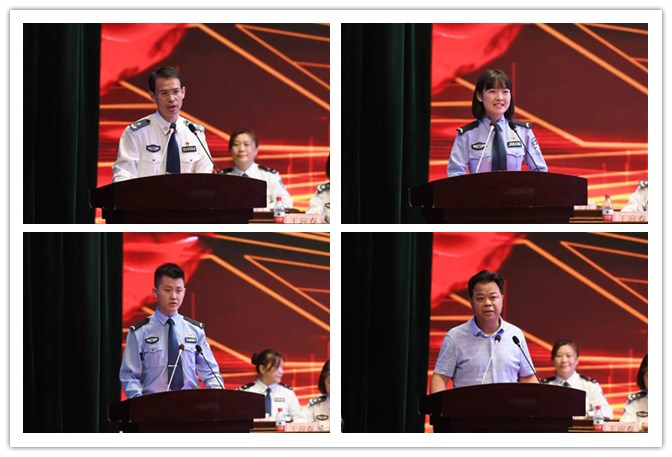刑事科学技术系毕业生李晟婷同学代表毕业生,治安学系李宏政同学代表在校生,俞学良代表学生家长,治安学系主任乐有金代表教师,先后发言,表达心声。