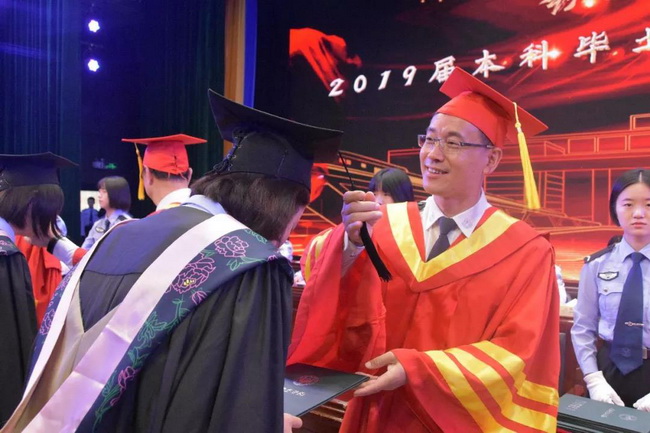 党委书记陈东升为2019届专科毕业生颁发毕业证书