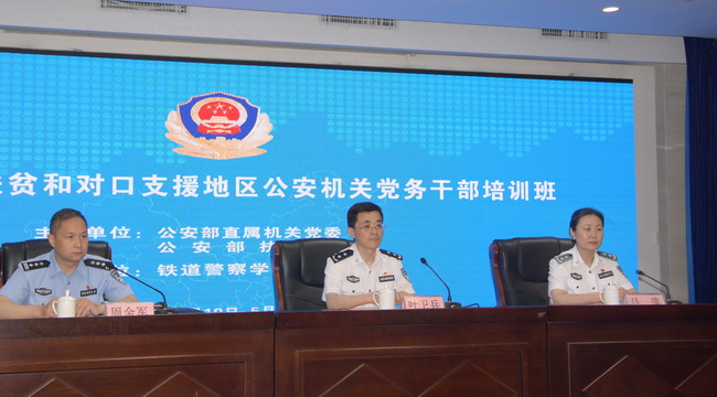 5月23日下午,公安部定点扶贫和对口支援地区公安机关党务干部培训班结业式在铁道警察学院举行。公安部直属机关工会主席、部扶贫办副主任叶卫兵,铁道警察学院党委委员、副院长吕萍同志,培训班全体学员和相关工作人员参加。