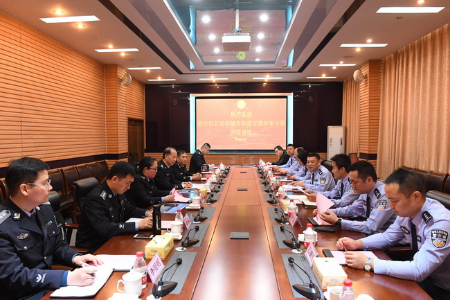 陈济鹏副院长参加座谈。在致辞中,陈副院长简要介绍了学院发展远景和轨道系组建历程及取得的成绩,对来访表示了欢迎。李秋才政委介绍了苏州市公安局城市轨道交通治安分局基本情况,对我院发展设计给予了高度评价,并就后续开展校局合作提出了期望。双方就专业建设、学生专业实习、民警在职培训、科研攻关等工作交换了意见,希望后续开展全面合作,打造新品牌,共筑新典范。