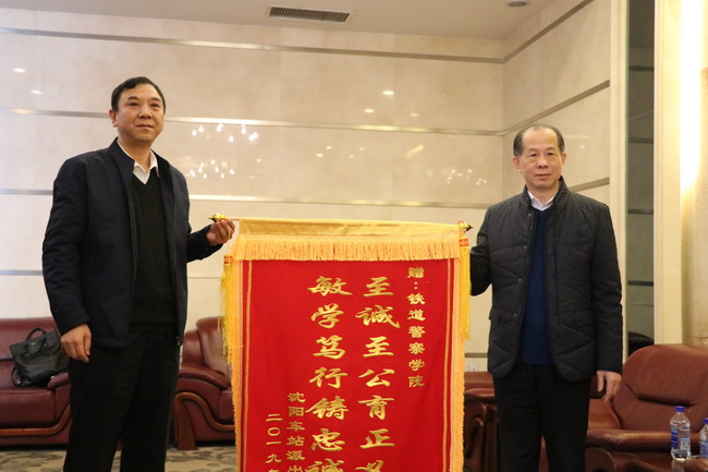 在沈阳站派出所,所队负责人向陈副院长介绍了沈阳站公安工作形势和实习学生的工作安排及实习表现,对我院学生的表现给出了“学习能力强、能吃苦耐劳、工作积极努力”的评价,并向我院赠送锦旗。在沈阳北站派出所、长春站派出所的座谈会上,实习学生汇报了一个多月来的实习经历,以及自身在警务技能、职业素养和群众工作能力等方面的体会与收获。