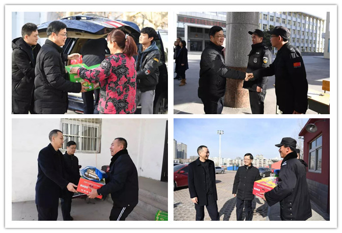 管曙光院长一行先后慰问了学院门岗、物业、水电、车队、枪械库、维修班、警苑宾馆、总值班、警体馆等岗位的工作人员。每到一处,学院党委领导都同值班人员握手致意,并关切询问每位工作人员值班期间的就餐、休息情况,感谢他们的辛勤劳动和无私奉献,希望他们以高度的责任感和饱满的工作热情,认真做好春节期间的值班值守工作,切实保障校园安全稳定。