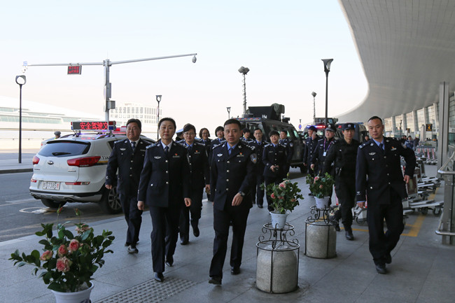 揭牌仪式结束后,吕萍副院长一行在韩颢局长的陪同下参观了机场公安局作战指挥中心、航站楼派出所等部门,详细了解了机场公安局实战指挥系统及其运行机制以及机场安检、治安维护、便民服务工作的实际开展情况。