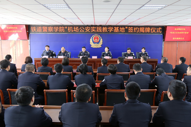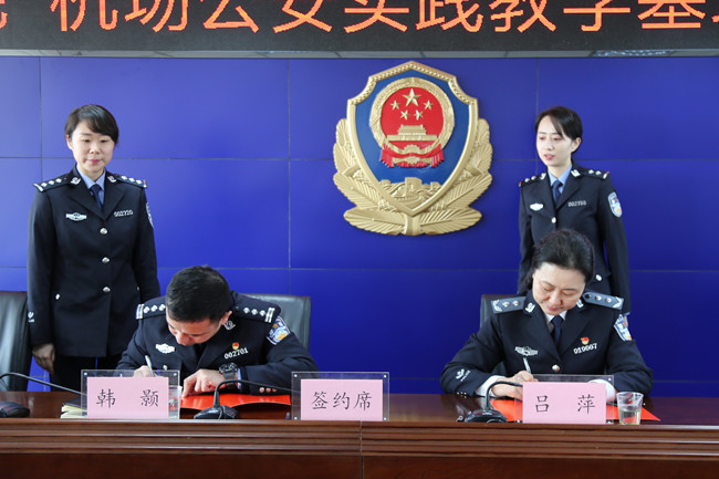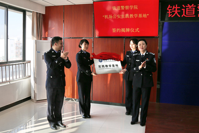 随后,吕萍副院长和韩颢局长分别代表学院和河南省公安厅机场公安局在实践教学基地合作共建协议书上签字,并共同为铁道警察学院河南省公安厅机场公安局实践教学基地揭牌。