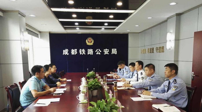 期间,调研组还对成都铁路公安局、四川省公安厅、成都市公安局进行了深度调研。成都铁路公安局熊树华局长高度重视此次调研,率办公室、反恐处、刑侦处、网安处、治安处负责人出席座谈会。熊局长亲自从公安科技信息化、铁路反恐常态化、执法队伍规范化、警务培训实战化四个方面,向调研组详细地介绍了成都铁路公安局的先进理念与做法,尤其是成都铁路公安局在基础工作信息化、公安业务信息化、行政管理信息化建设中,站位高端,理念前沿,设计科学,已经走在了全国铁路公安机关的前列,给调研组留下了深刻印象。双方在教师挂职锻炼、学生专业实习、教官资源共享、培训教材合编、科研联合攻关、学术交流研讨等方面达成了初步的合作意向。