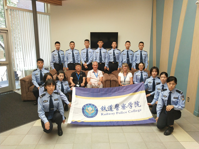 加拿大时间8月5日上午8时,第七届JIBC学分转换班开班仪式在奇利瓦克(Chilliwack)校区正式举行。来自中国人民公安大学、铁道警察学院、江苏警官学院、湖南警察学院、广西警察学院、四川警察学院等6所公安院校的一百余名师生在教学楼前举行了开学典礼。