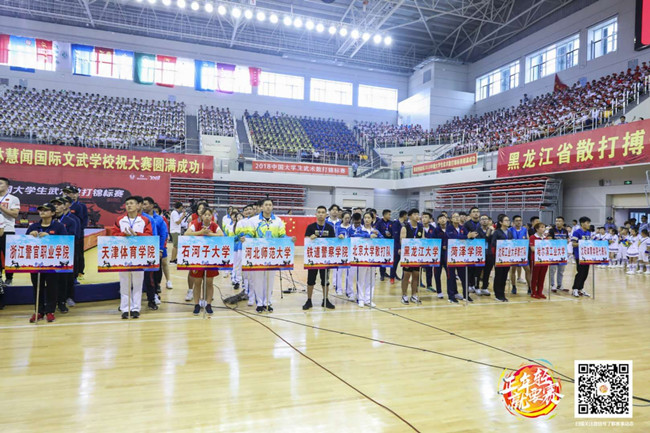 中国大学生武术散打锦标赛由中国大学生体育协会主办,代表国内大学生武术散打最高竞赛水平。此次比赛,有来自全国12个省市区、33所高校的375名大学生参加。参赛院校中,既有北京大学、哈尔滨工业大学等名校,也有北京体育大学、山东体育学院、吉林体育学院等专业体育院校,公安政法院校中有铁道警察学院、浙江警官职业学院、北京警察学院、西北政法大学等组队参赛。