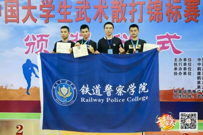 7月20日,2018年中国大学生武术散打锦标赛(鹤岗赛区)在黑龙江鹤岗市体育馆落下帷幕。由铁路警务系2016级治安管理专业张岚、毛元慧,轨道交通安全保卫系2016级侦查学专业王建成为队员,林永老师为领队和教练员的我院散打队,首次参加了甲组54kg级、64kg级、68kg级的比赛。最终张岚同学获得54kg级亚军,毛元慧同学获得64kg级季军,王建成同学获得68kg级第五名,林永老师被赛会评为“优秀教练员”。