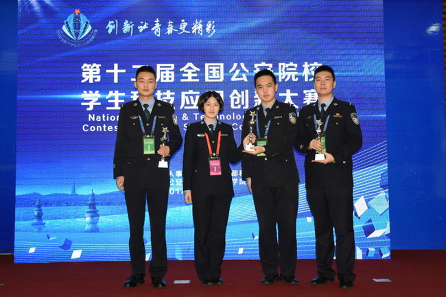 公安院校学生科技应用创新成果奖是公安部科技信息化局面向全国公安院校学生,围绕公安科技应用创新组织评选的重要奖项,旨在加强公安专门人才储备和科技人才队伍建设。学生科技应用创新活动也是我院学生警务素质教育的重要组成部分,是对大学课堂教学的有力补充和改进,是深入实施科技强警战略的一项基础性、源头性工程,学校每年开展一次,由指导教师一对一的辅导,学生团队成员一般为3-5人,选题注重新颖性、创新性,论证注重逻辑性和严密性,研究成果形式注重多样性。截止目前,我院共开展了九届学生创新成果奖评选活动。升本至今共参加了五届全国公安院校学生科技应用创新成果奖评选活动,参评成果75项,获奖45项。其中,2017年我院15项学生创新成果参加公安部评奖,取得了10项成果获奖,银奖3项、铜奖7项的好成绩。
