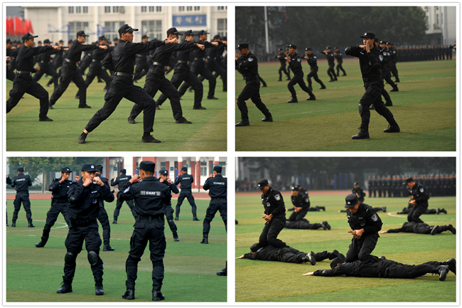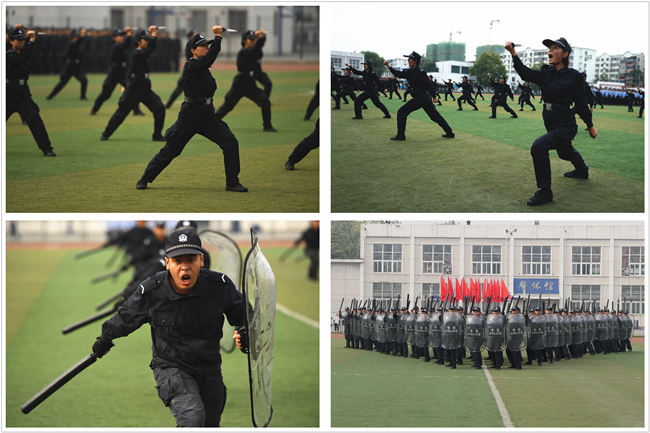 警务技能团体操表演中,女子匕首操柔中带刚,展现了巾帼英雄的青春风采;擒敌拳、军体拳威武有力,打出了铁警雏鹰的自强不息;警棍盾牌操虎步生风,体现了铁警男儿的阳刚之气。精彩的表演,赢得师生家长们的阵阵喝彩。