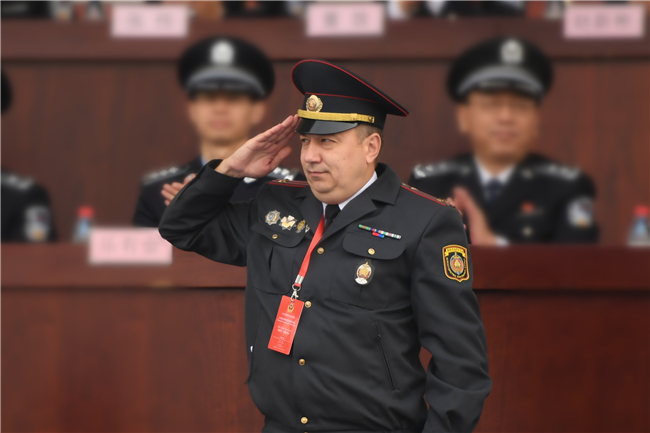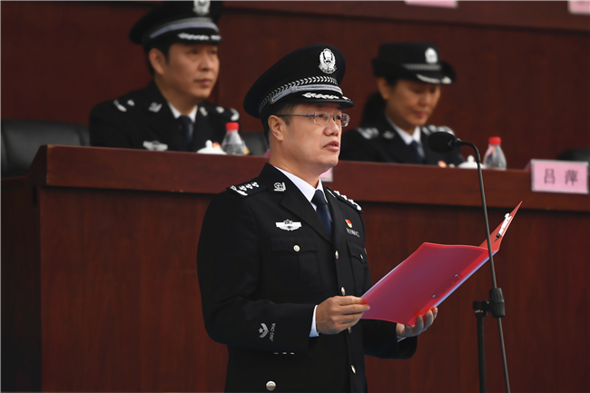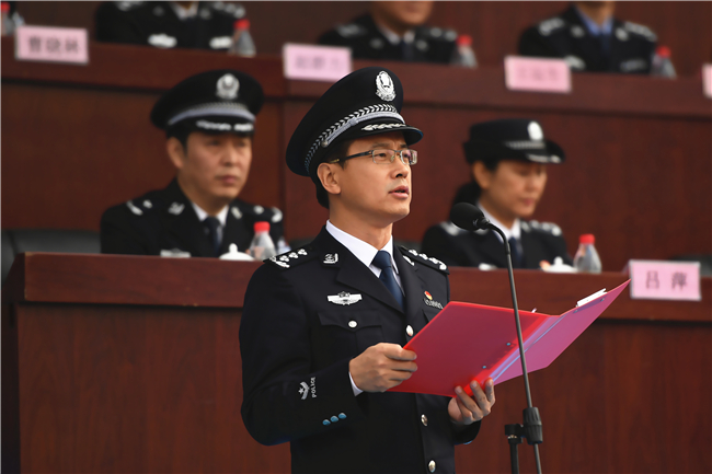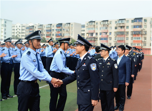 他说:伴随着铿锵的步伐、嘹亮的口号,从今天起,大家将在这里激扬青春梦想,朝着“对党忠诚、服务人民、执法公正、纪律严明”的合格人民警察方向扬帆起航!