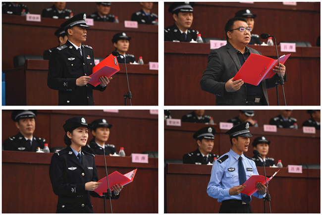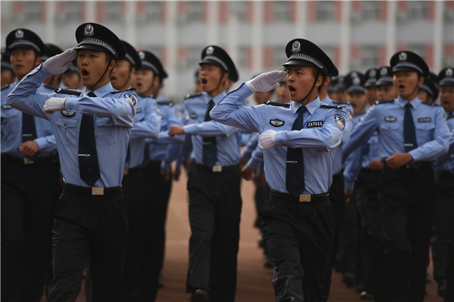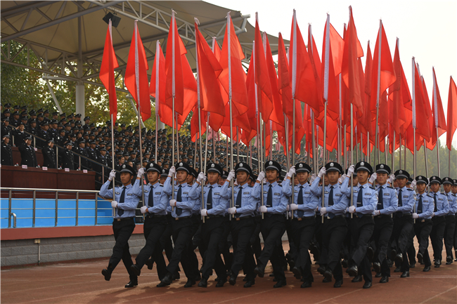2017级全体学生郑重宣誓:对党忠诚,服务人民,执法公正,纪律严明。坚定信念,牢记使命,服从命令,听从指挥,勤奋学习,刻苦训练,努力成为一名合格的人民警察。