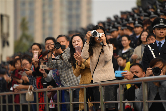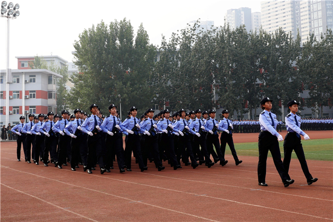 阅警分列式方队表演,由1304名新生组成的护旗方队、红旗方阵、女子微冲方阵以及8个徒手方阵,他们以青春活力和昂扬斗志,彰显着铁警学子立志从警的信念和敢打必胜的信心,依次通过主席台接受检阅。