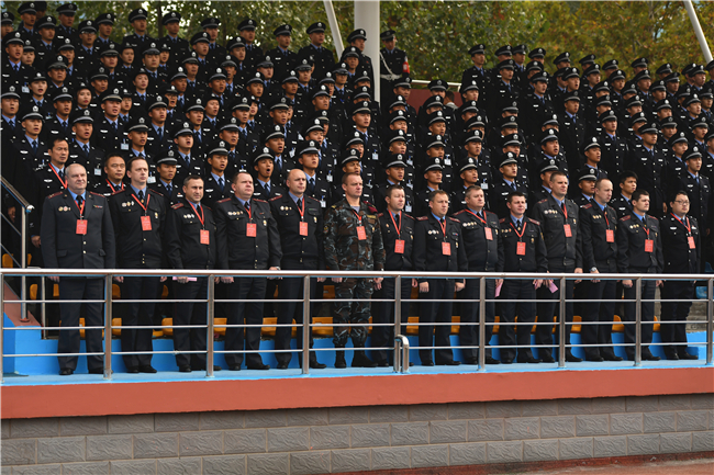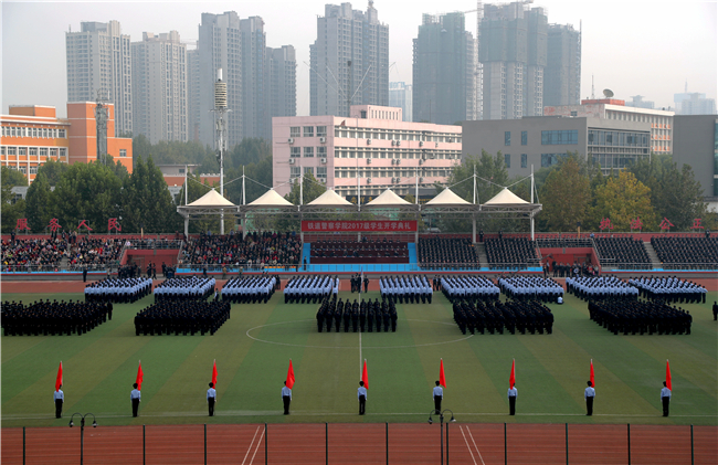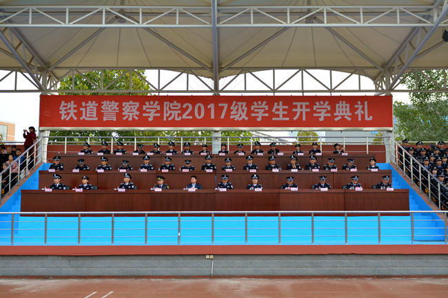 10月21日,在举国上下热烈庆祝党的十九大胜利召开之际,铁道警察学院2017级学生开学典礼在田径运动场隆重举行。学院党委书记陈东升,党委副书记、院长管曙光,副院长胡传平、江宜怀、陈济鹏、吕萍,院长助理李冠一、王哲出席典礼。河南省教育厅学生处副处长赵世矿、河南省公安厅组教处处长李世锋,白俄罗斯铁路警察培训班团长维塔利•杜里茨耶夫中校应邀出席典礼。白俄罗斯铁路警察培训班学员,教职工代表,学生家长代表及2015、2016、2017级学生参加了开学典礼。典礼由管曙光院长主持。