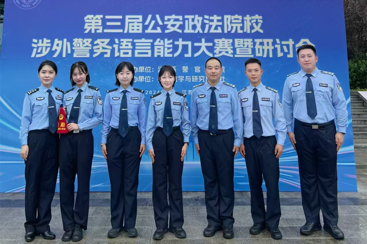 9月20日至21日,第三届公安政法院校涉外警务语言大赛在江苏警官学院成功举办,来自全国23所公安政法院校的队伍参加决赛。我院公安基础教研部《铁路警务英语》课程团队王保飞、刘铖、王童三名教师,及实战顾问、洛阳铁路公安处三级警长王欣警官,带领潘可馨、宋豫欣和李睿三位同学参赛并斩获佳绩。