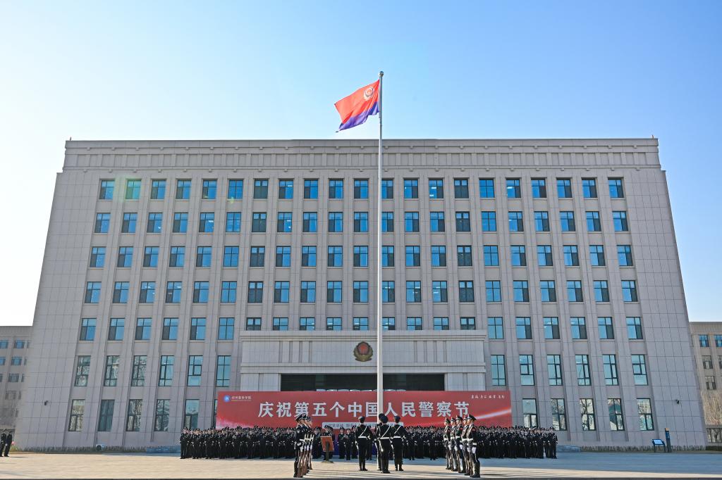 为庆祝第五个“中国人民警察节”,强化全体干部教师的职业荣誉感、使命感与责任感,激发投身公安事业的热情与决心,1月10日,学院在龙湖校区行政楼前举行庆祝第五个中国人民警察节升警旗仪式。