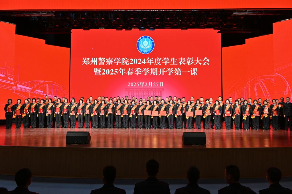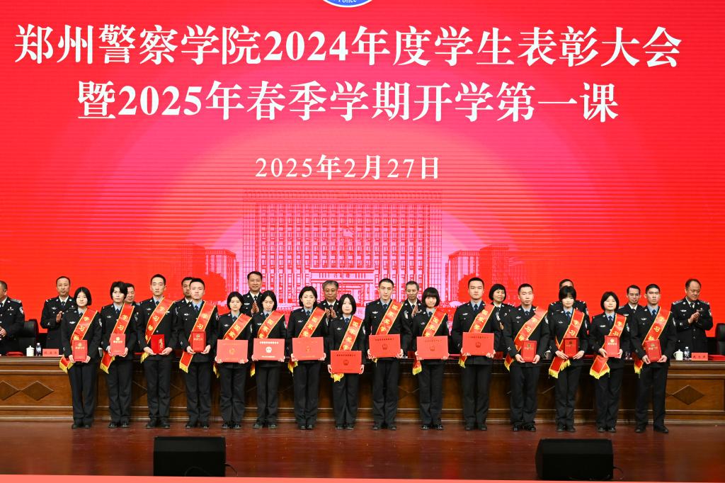 下午4点30分,会议在奏唱《国歌》声中拉开帷幕。教务长王缨军宣读了2024年度学生受上级表彰和校内获奖情况的通报。党委委员、薛怀祖副院长宣读了2024年度学生竞赛获奖情况通报。学院领导为受表彰学生代表颁发荣誉证书。获奖学生代表、治安学系2023级一中队贾雅丹同学,竞赛指导老师代表、刑事科学技术系副教授崔胜峰,学管干部代表、图像与网络侦查系党总支副书记刘衡分别做了表态发言。