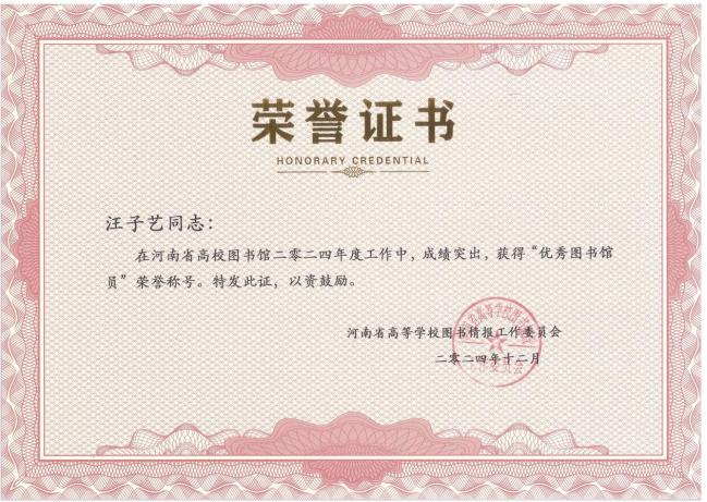 4月18日,河南省高校图书馆工作会议在河南财经政法大学图书馆举办。会议对全省高校图书馆的阅读推广相关奖项进行了表彰,我校图书馆共荣获2项荣誉称号。其中,学校图书馆荣获“优秀图书馆”荣誉称号;图书馆综合部汪子艺老师荣获“优秀图书馆员”称号。