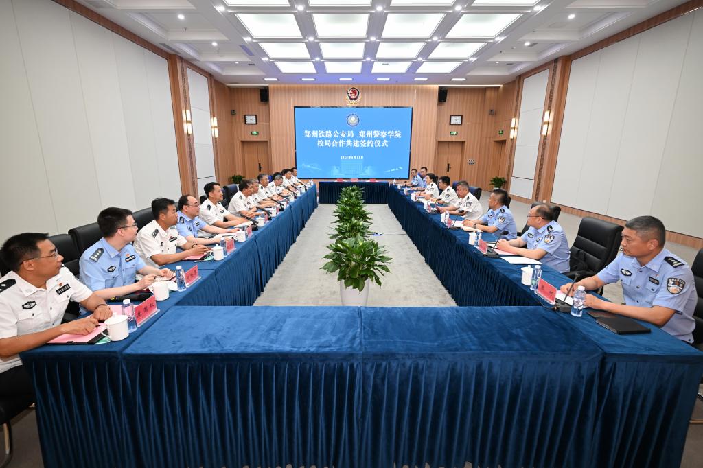 为认真贯彻公安部党委决策部署,落实公安高等教育高质量发展的意见要求,5月13日下午,学校邀请郑州铁路公安局局长张雯芳、政委梁立峰一行到校开展校局合作座谈,共签合作协议。学校党委书记白少强、院长刘义祥共同参加座谈并出席签约仪式。