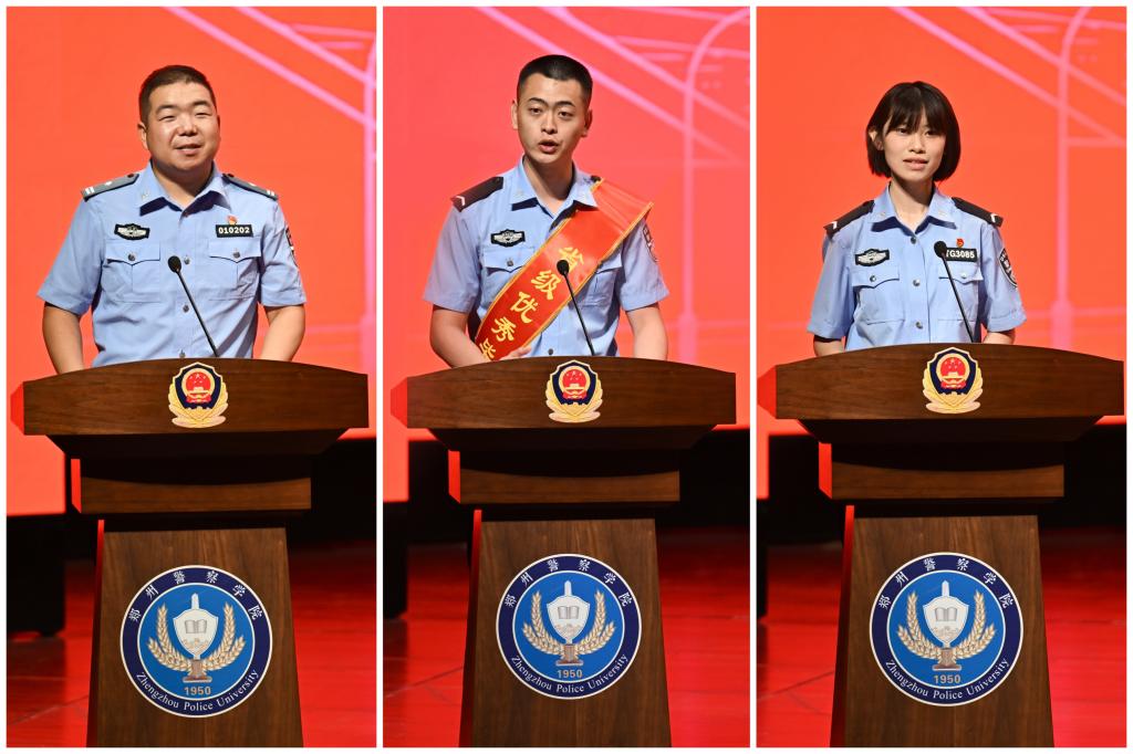 马克思主义学院张红亮老师、网络安全与智慧警务学院2021级毕业生杨凯钧、铁路与城轨警务学院2023级在校生邢睿言同学分别代表教师、2025届毕业生、在校生先后发言。