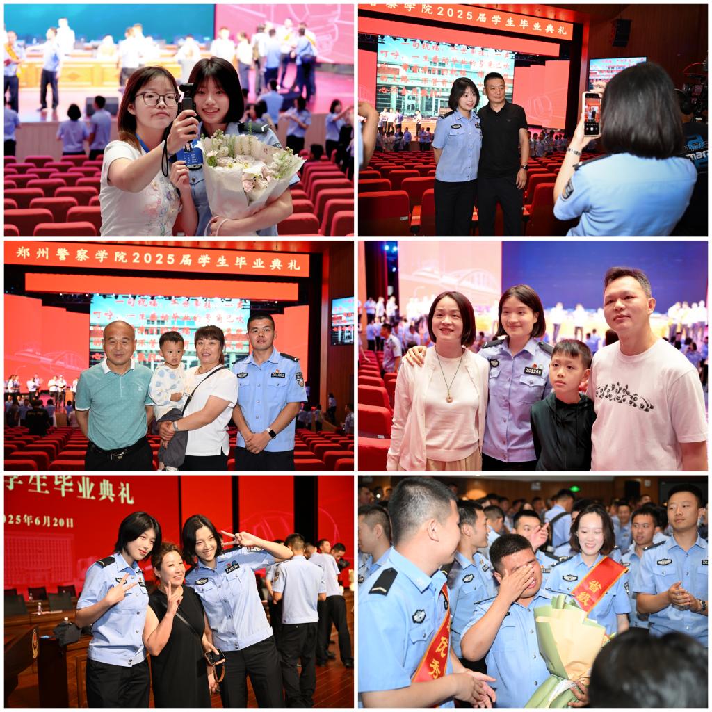 龙湖校区的礼堂,氛围庄重而又热烈。典礼正式开始前,全体2025届毕业生与家长齐聚礼堂,共同观看毕业献礼片,聆听毕业献歌,重温在郑警学院求学生涯中的点滴记忆。