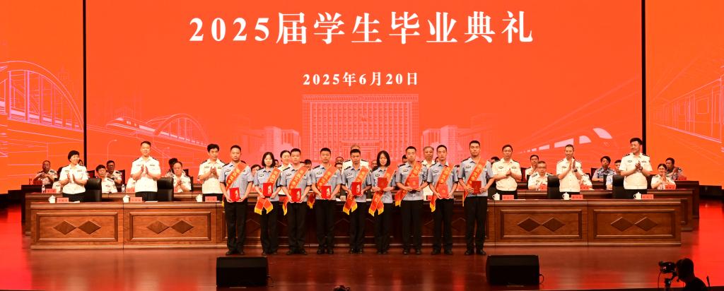 2025届毕业典礼在激昂的《中国人民警察警歌》中结束。全体校领导与毕业生握手告别,送上祝福。毕业生齐唱《夜空中最亮的星》《后来》《再见》《真心英雄》,向大学时光作最后道别,为未来送上美好祝福。