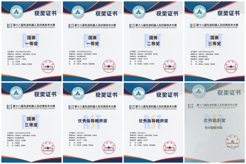 8月8日,第十八届先进机器人及仿真技术大赛先进技术赛道国赛在大同市和阳美术馆圆满落幕。作为由中国仿真学会主办的国际性高端学科竞赛,该赛事旨在推动机器人专业人才培养,促进仿真技术在机器人设计与开发中的应用,并为全球高校和科研机构提供展示成果、交流经验的重要平台。在与全国众多985、211重点高校的激烈角逐中,我院学子凭借扎实过硬的专业功底和团结协作的团队精神脱颖而出,斩获一等奖2项、二等奖1项、三等奖2项,取得优异成绩,我校获得优秀组织奖,李卫平、屠晓涵和丁浩林老师同时荣获“优秀指导教师奖”,充分彰显了我院在机器人与仿真领域的人才培养优势与科研实力。