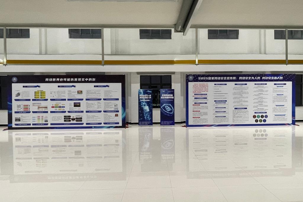 活动期间,学校在各宣传栏张贴了网络安全宣传海报,在教学楼4楼大厅布置了网络安全知识展板,系统呈现了《中华人民共和国网络安全法》《中华人民共和国数据安全法》《中华人民共和国个人信息保护法》等核心内容,结合高校典型真实案例,这些展板成为师生学习网络安全知识的重要窗口。