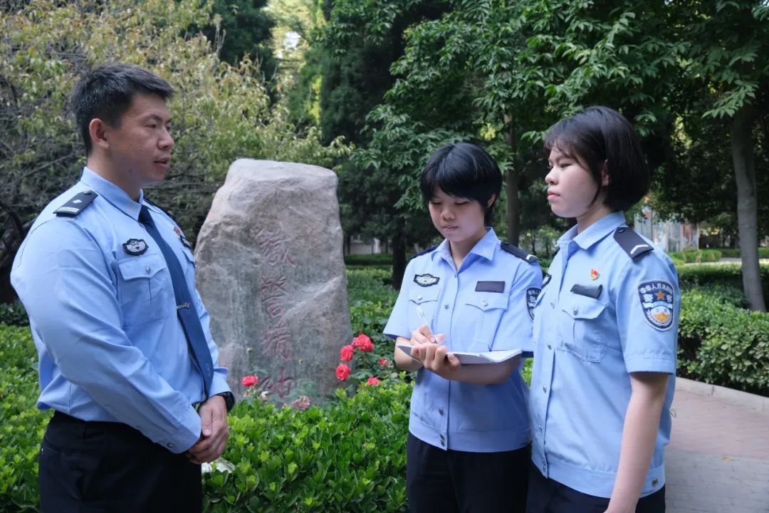 微风轻起,回忆自己的学生年代,王靖师兄感慨万千,如今龙湖校区的生活基础设施和教学硬件水平与当年相比已是天壤之别,老师的教学水平也大幅提升,学生们的身体素质显著增强。在深入了解目前的教学模式后,王靖师兄希望同学们能够早点知道自己想做的是什么,应当了解基层民警的工作内容,在实习中和毕业后的从警路上多去尝试。以他的工作单位南宁铁路公安处为例,新警入警后进行轮岗,尝试不同岗位的工作,以战代训,在实践中操练技能素质,希望同学们能够系好人生路上的第一枚纽扣。