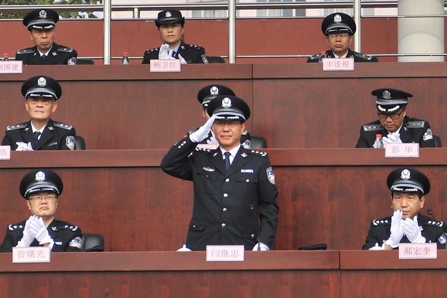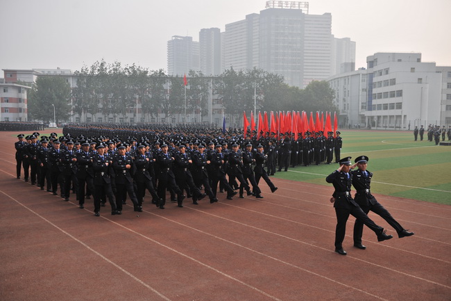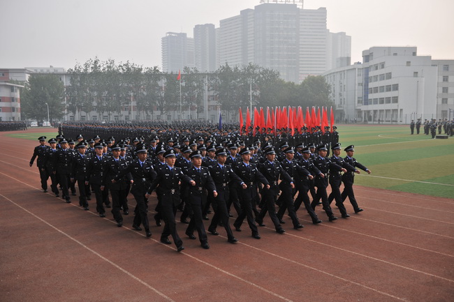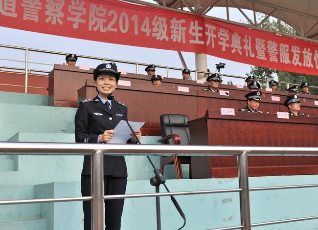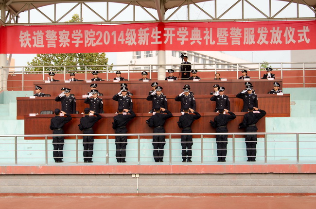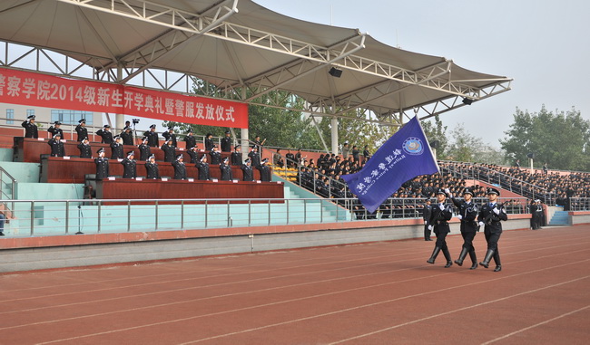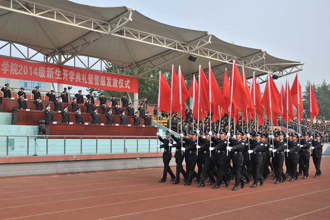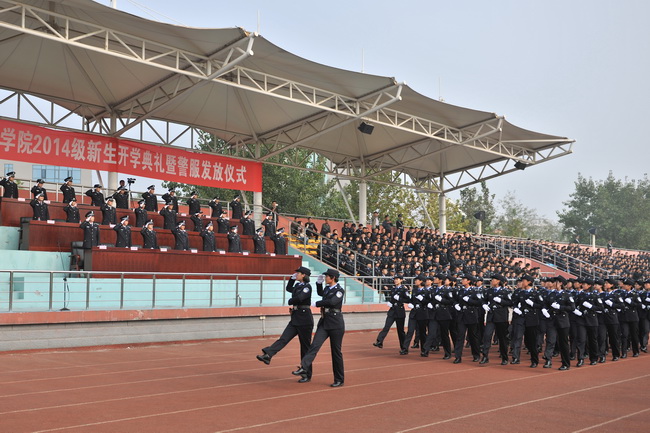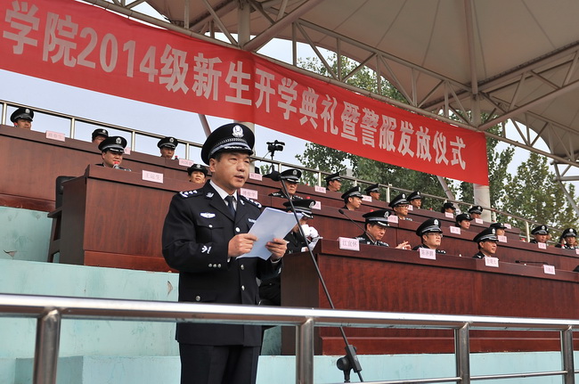 10月22日下午,我院2014级新生开学典礼暨警服发放仪式在田径场隆重举行。学院领导闫继忠、郝宏奎、管曙光、杨国强、江宜怀、陈济鹏、李冠一、王哲出席开学典礼。