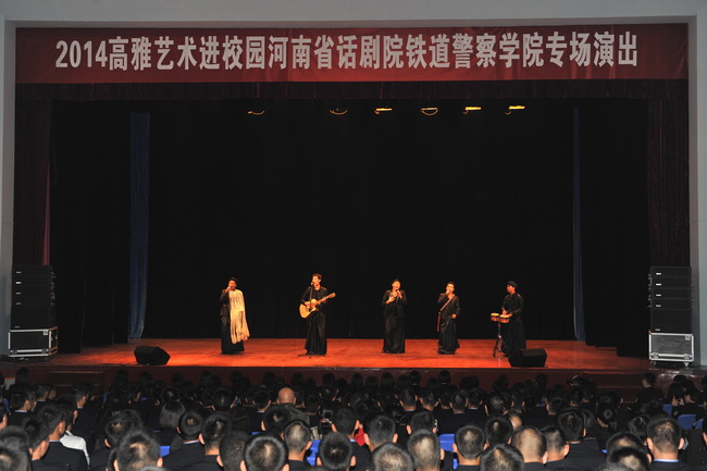 为进一步弘扬优秀民族艺术,丰富我院师生的业余生活,提高文化艺术修养,10月22日晚,2014年河南省高雅艺术进校园河南省话剧院到我院开展专场演出。