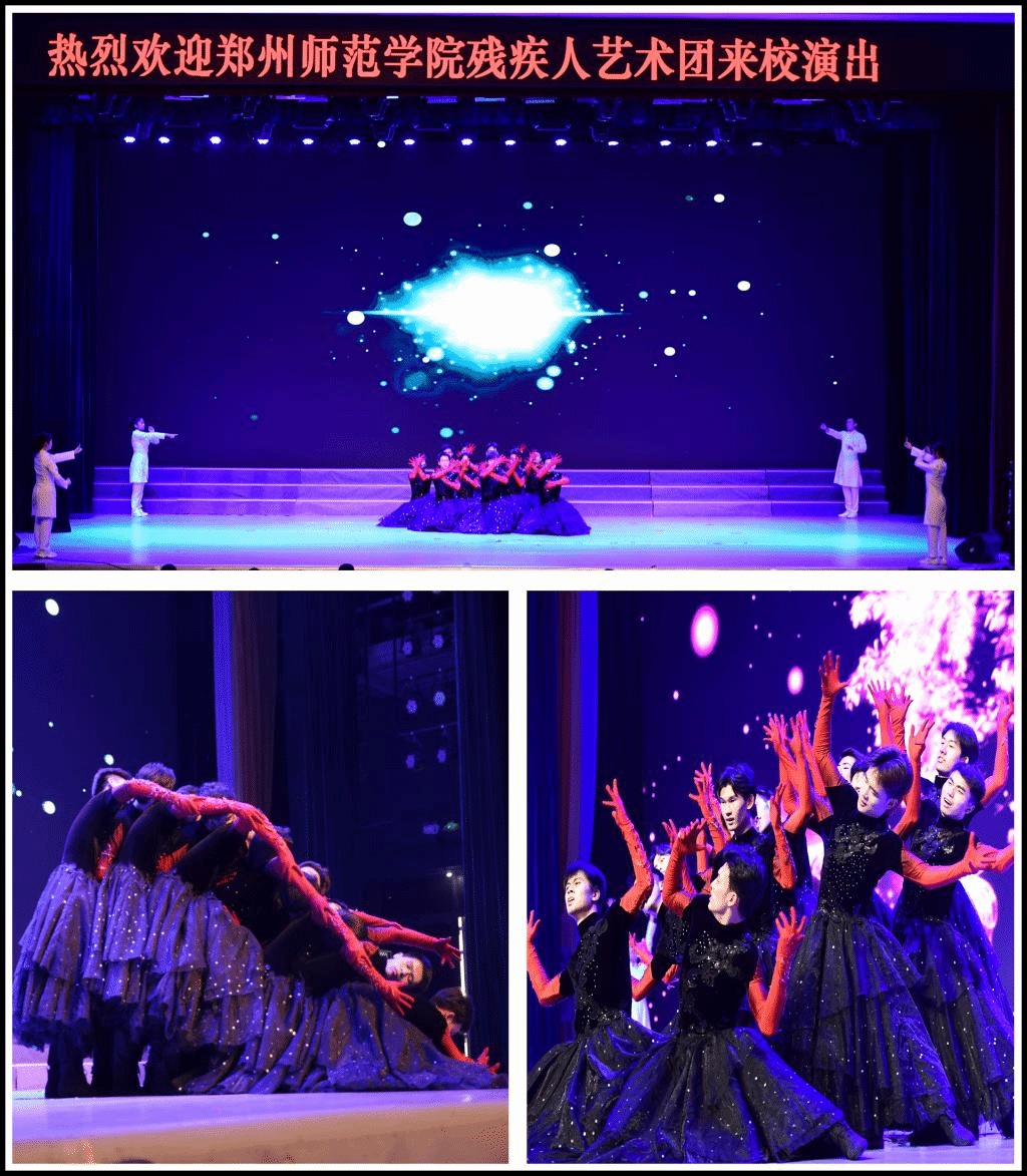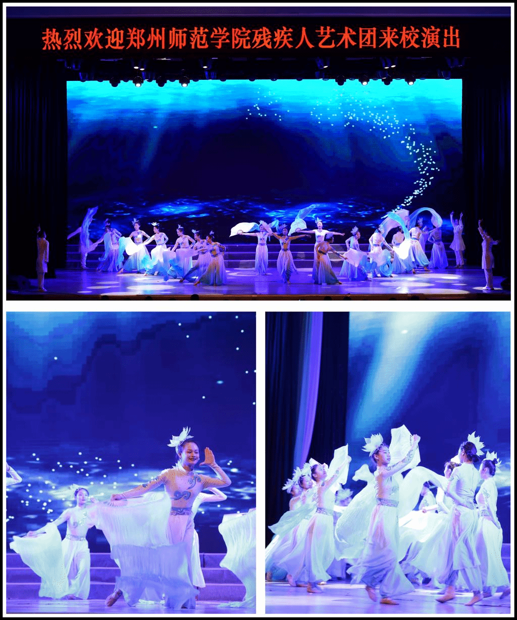 报告会上,郑州师范学院残疾人艺术团成员现场展示了《妙手生花》《听海》《鼓舞心声》三个舞蹈作品,他们用真挚的表演诠释了残疾人自强不息、勇于拼搏、乐观向上的生活态度,在无声的世界里,舞出惊艳的青春!艺术团的同学们对舞蹈的热爱与执着,深深打动着在场的同学们,他们纷纷表示,艺术团的同学们虽然身体上存在缺憾,但是他们满怀对美好生活的向往,用超出常人的坚韧幻化出美妙的舞姿,诠释着生命的尊严和生活的意义,用纯真的爱感染和鼓舞着身边的每一个人。作为他们的同龄人,除了深受感动,也更加坚定了自己实现藏蓝梦想、成长为合格人民警察的决心!