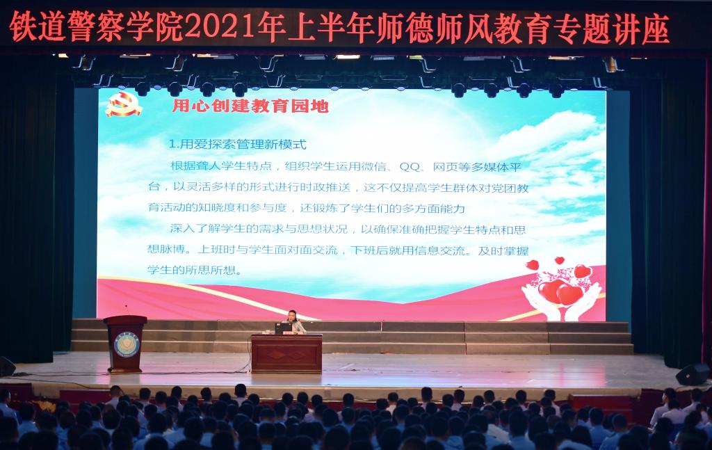 为贯彻落实教育部《关于在教育系统开展师德专题教育的通知》精神和《中共铁道警察学院委员会关于进一步加强和改进师德师风建设的指导意见》,根据学院党史学习教育部署和师德专题教育工作安排,作为学校庆祝中国共产党成立100周年系列活动之一,6月18日,郑州师范学院特殊教育学院党总支副书记、郑州师范学院残疾人艺术团团长、“河南省最美教师”董晶晶应邀来我院做师德师风教育专题报告会,并携郑州师范学院残疾人艺术团在学院礼堂展示获奖作品。学院党委副书记吕萍、全体在校教职工及学生代表参加报告会。