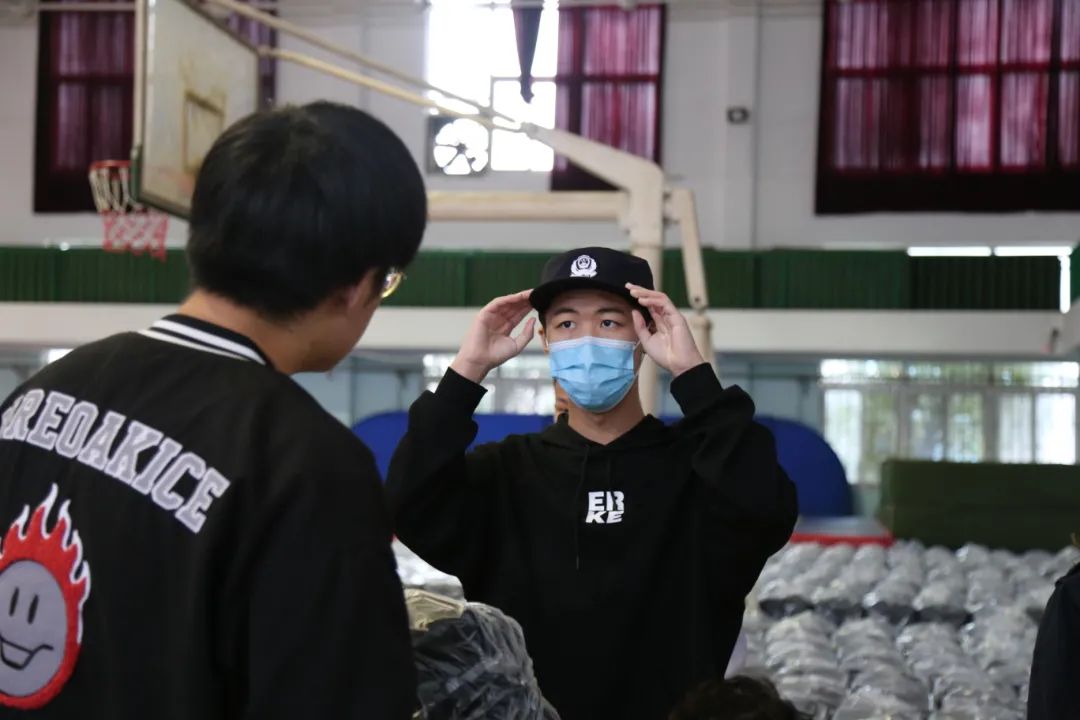 在完成相关报到流程后,2021级新生列队至警体馆领取生活用品及军训物资。统一领取完凉席、毛巾被、拉杆行李箱等生活用品之后,新生依次测量体重、身高,继续领取相对应尺码的作训服、作训鞋等,学院让新生更加快速地领取到学院统一采购的生活物资,也为新生适应开学及其军训提供了极大的便利。