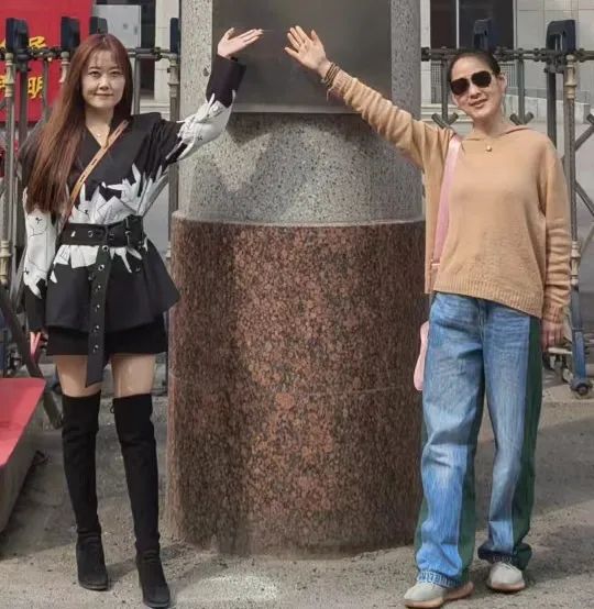 两位师姐南门拍照留念